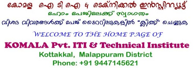 KOMALA I T I & Technical Institute Posted by KOMALA I T I & Technical Institute, KOTTAKKAL on January 10, 2011 Posted in: Uncategorized. Please “CLICK” on appropriate page titles for detailed information 10.999051 76.007649 Like Loading...